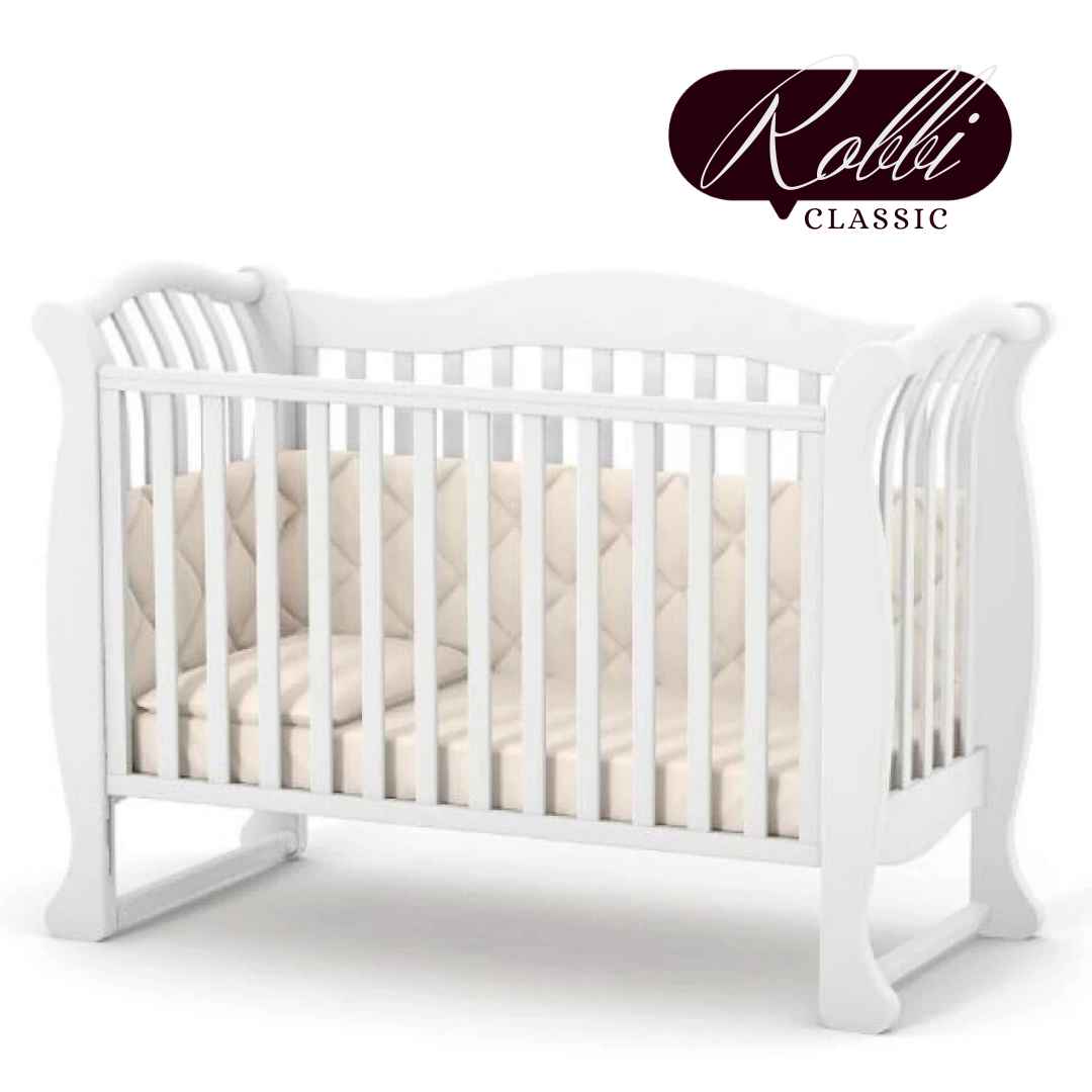 Dětská postýlka Robbi – to je krásná postýlka s klasickým designem, s jemně tvarovanými dřevěnými detaily a vzorem na zadní bočnici.