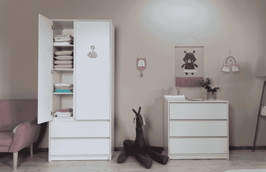 Skříň Lovitto umožní pohodlně uložit oblečení, ložní prádlo, dětské hračky a další věci a také naučit děti samostatnosti.
