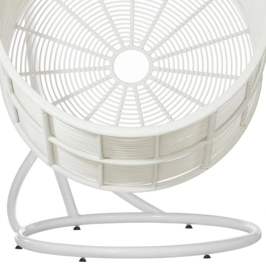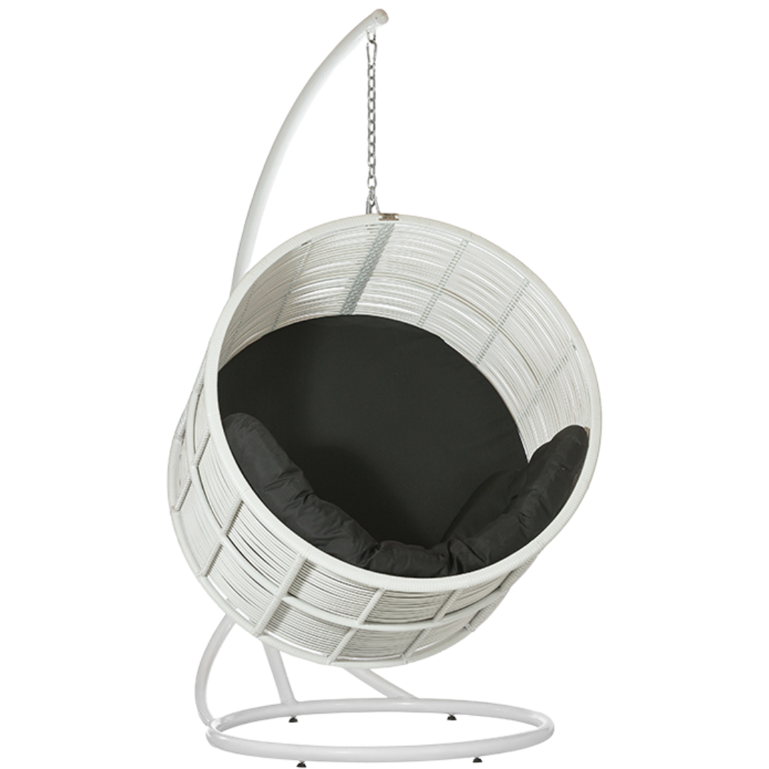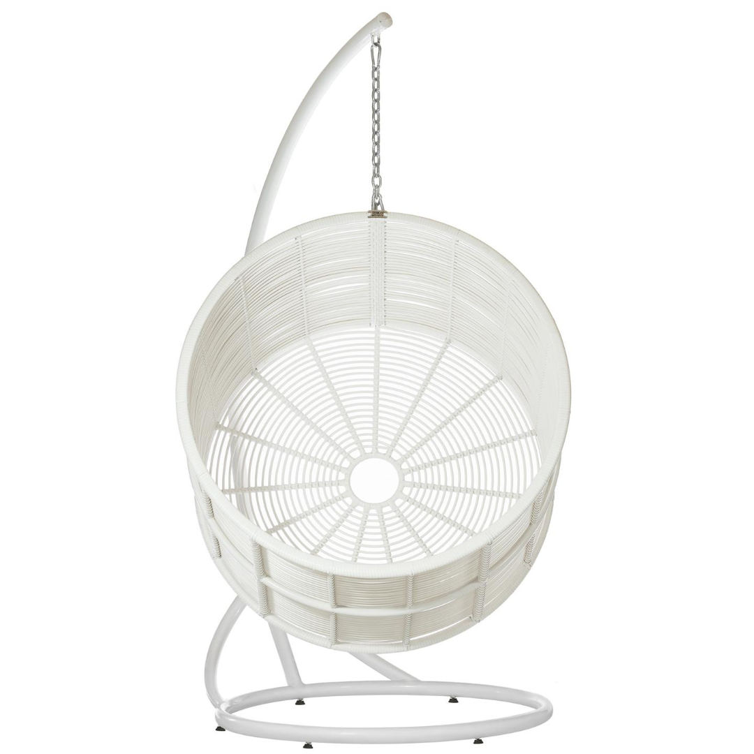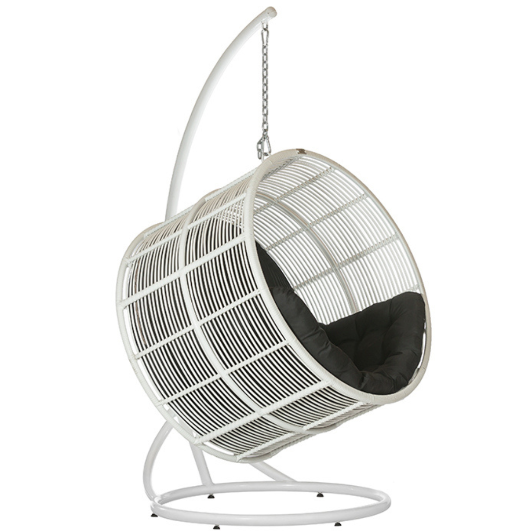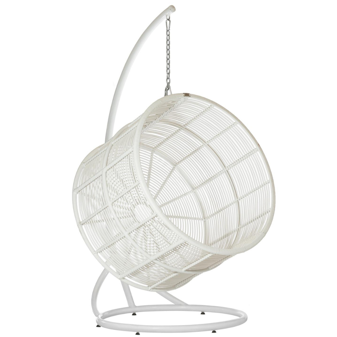 Stylové závěsné křeslo se stojanem TINO Terico — houpací křeslo s oblým tvarem. Bílé