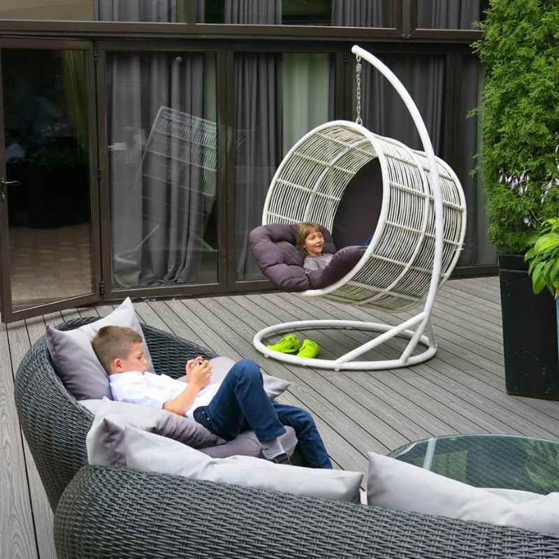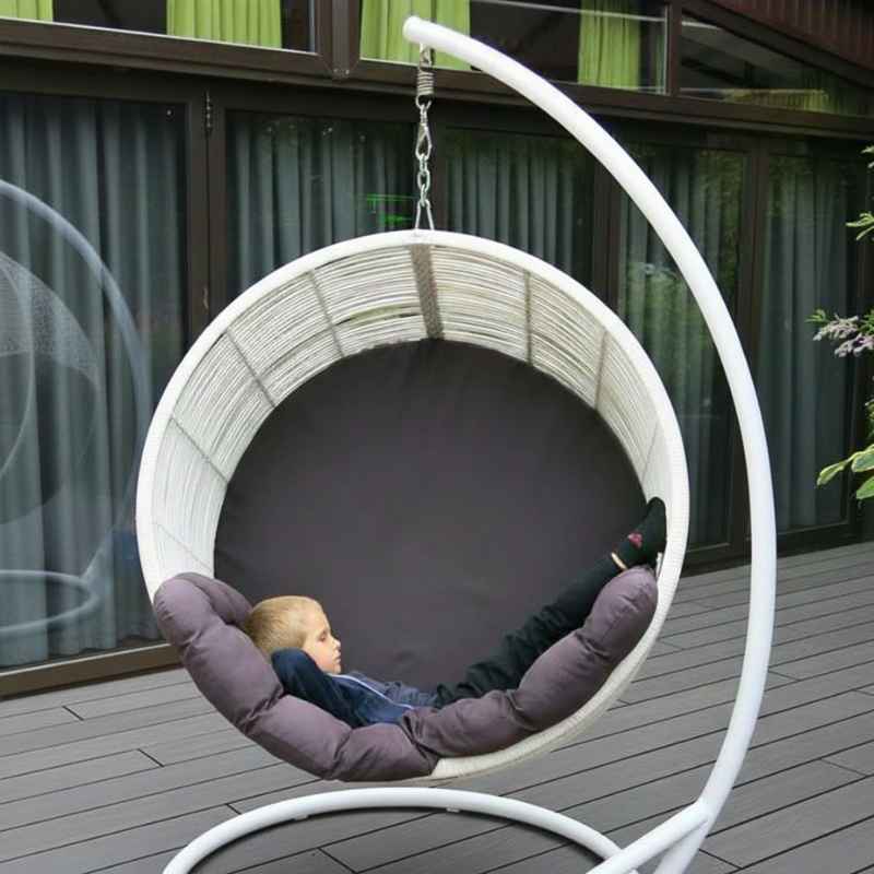 - Stylové závěsné křeslo se stojanem TINO Terico — houpací křeslo s oblým tvarem. Bílé