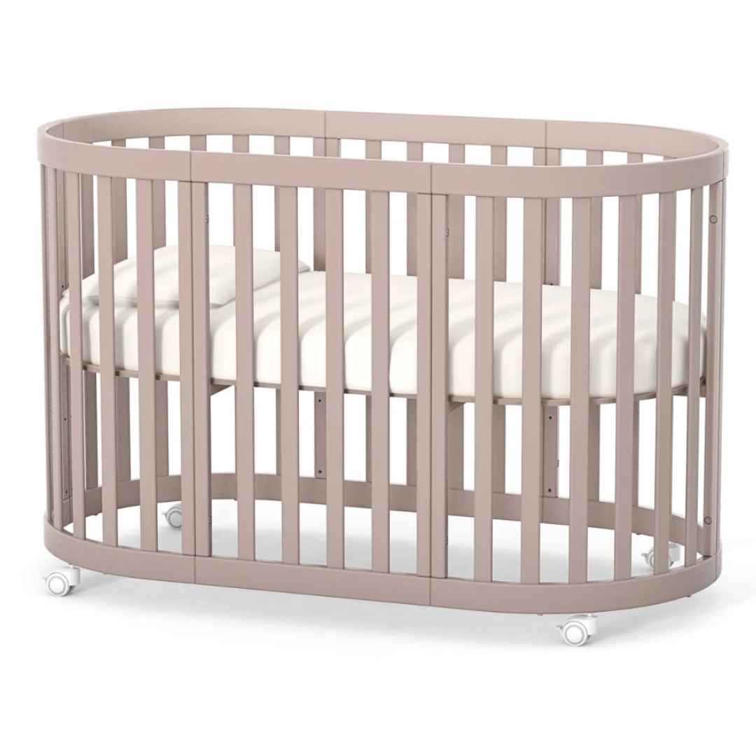 Zvláštností oválné postýlky Mikko je možnost nastavení výšky lůžka, díky čemuž se nebudete muset s miminkem příliš ohýbat.