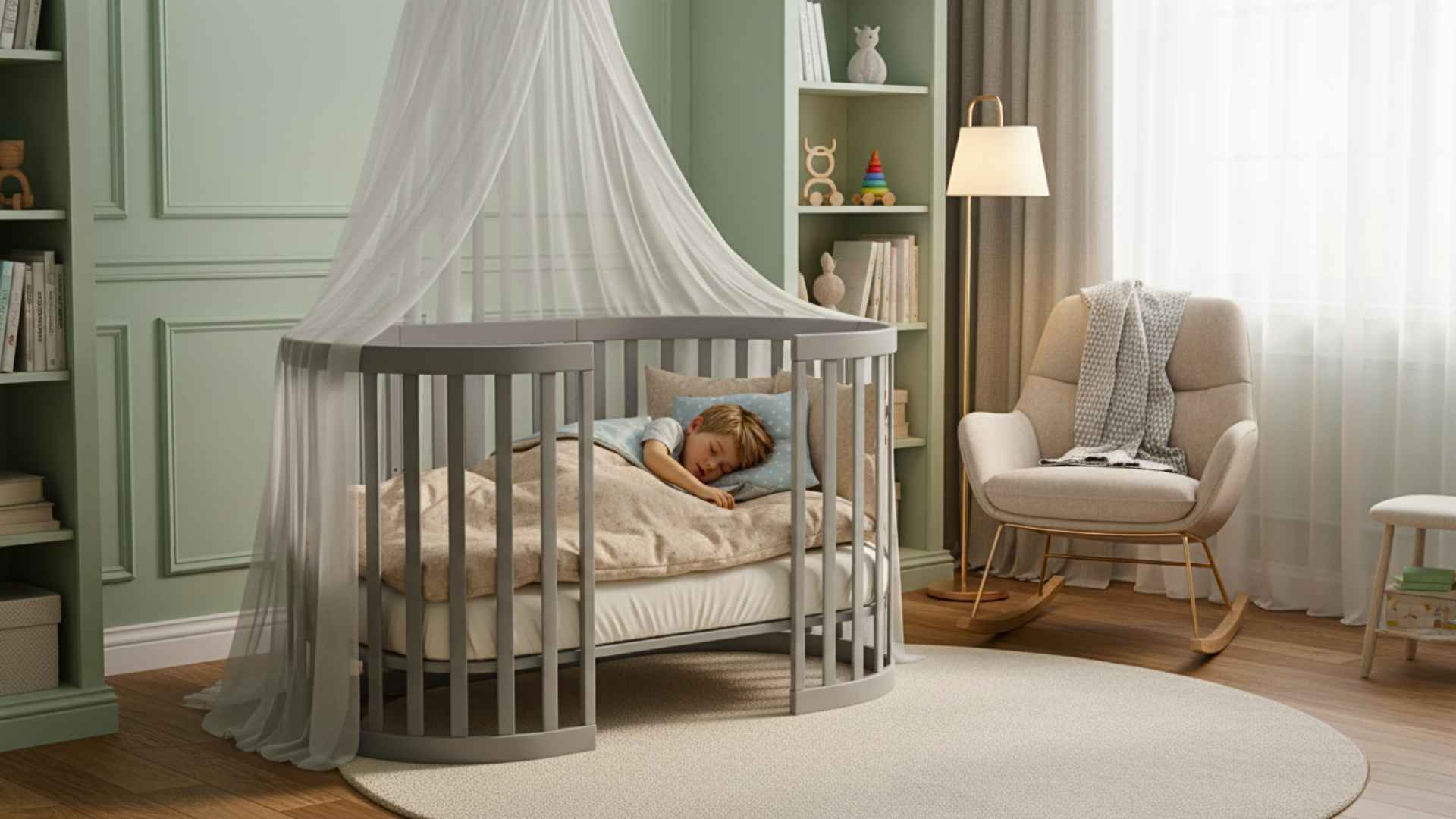 Zvláštností oválné postýlky Mikko je možnost nastavení výšky lůžka, díky čemuž se nebudete muset s miminkem příliš ohýbat.