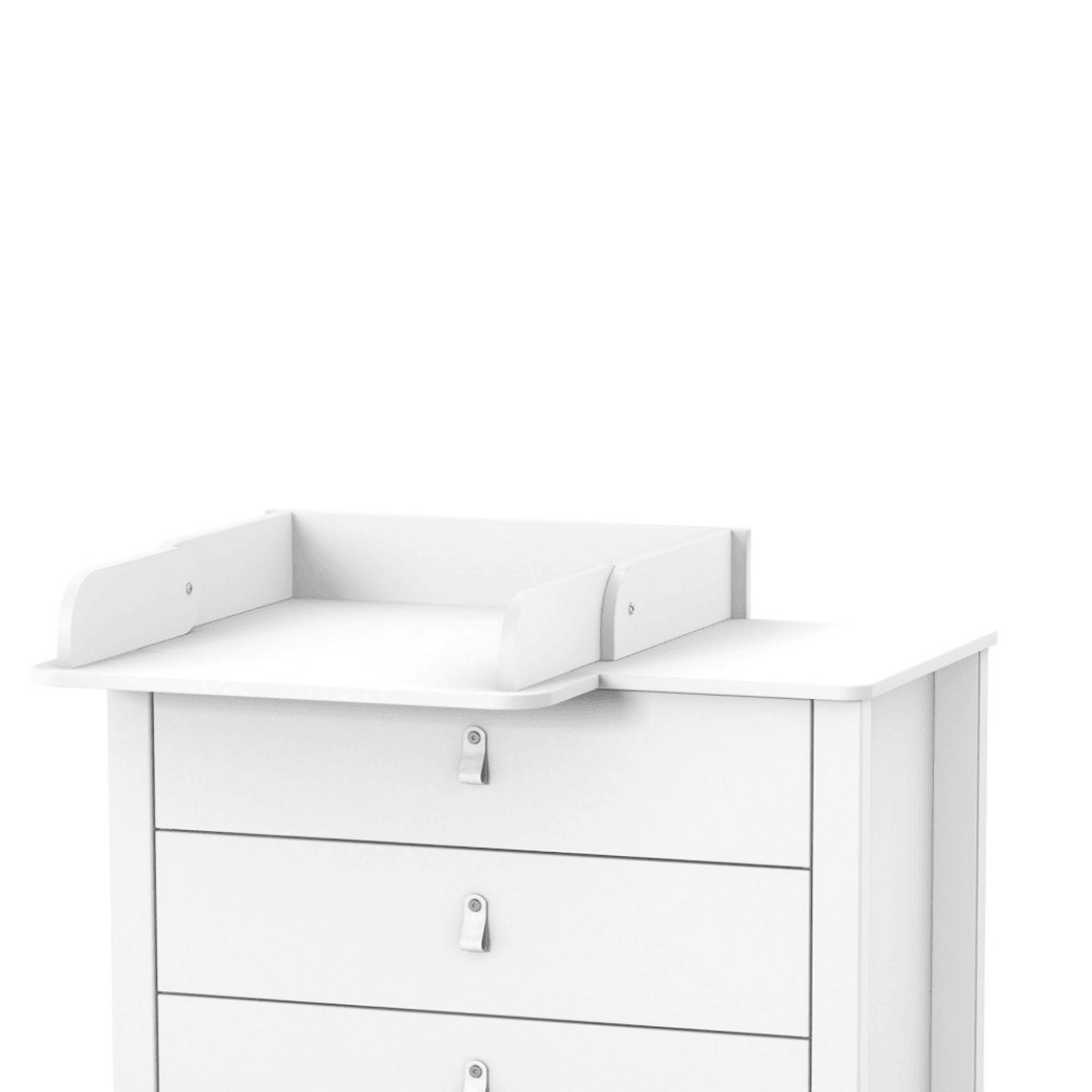 Úzký přebalovací stolek 600 pro dětskou komodu. Pohodlná výška komody a přebalovací plochy umožňuje snížit zátěž na záda maminky. Výhodou úzkého přebalovacího stolku 600 je, že vedle něj lze odložit věci potřebné k přebalování, které tak budou mimo dosah dítěte.
