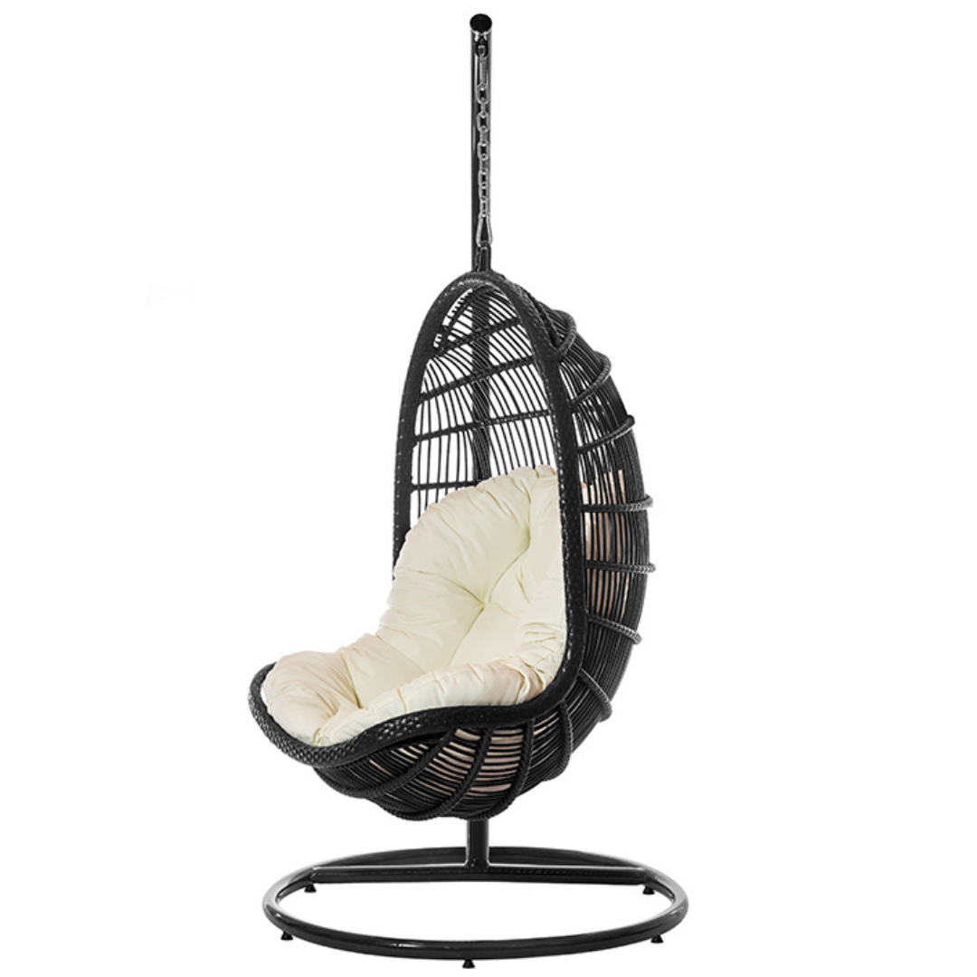 Vysoce kvalitní závěsné křeslo se stojanem PARMA Terico — houpací křeslo s ergonomií klasického křesla. Černé